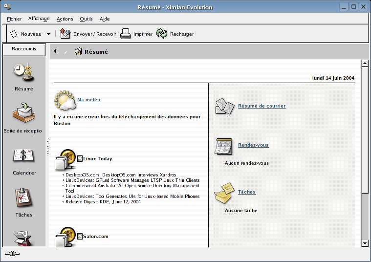 Lorsque vous lancez Evolution pour la premiére fois vous avez ceci :